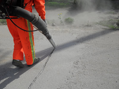 用空壓機或背負式吹風(fēng)機將槽內(nèi)的碎渣及裂縫兩側(cè)至少lOcm范圍內(nèi)的灰塵徹底清掃干凈。